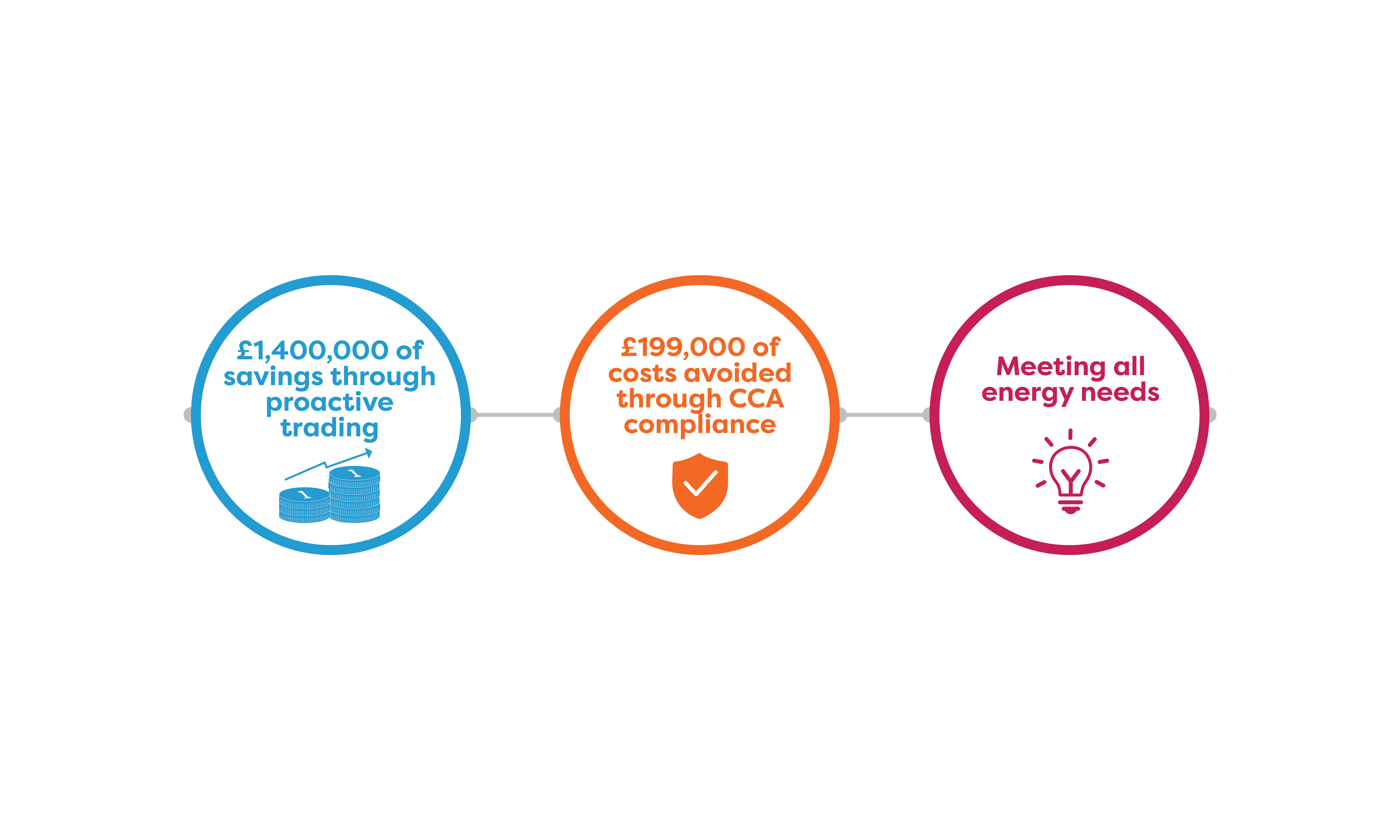 - Proactive hedging in early 2021, when prices were low, ensured that the manufacturer were well positioned and avoided price highs, achieving savings of £1,400,000 over the duration of the contract.