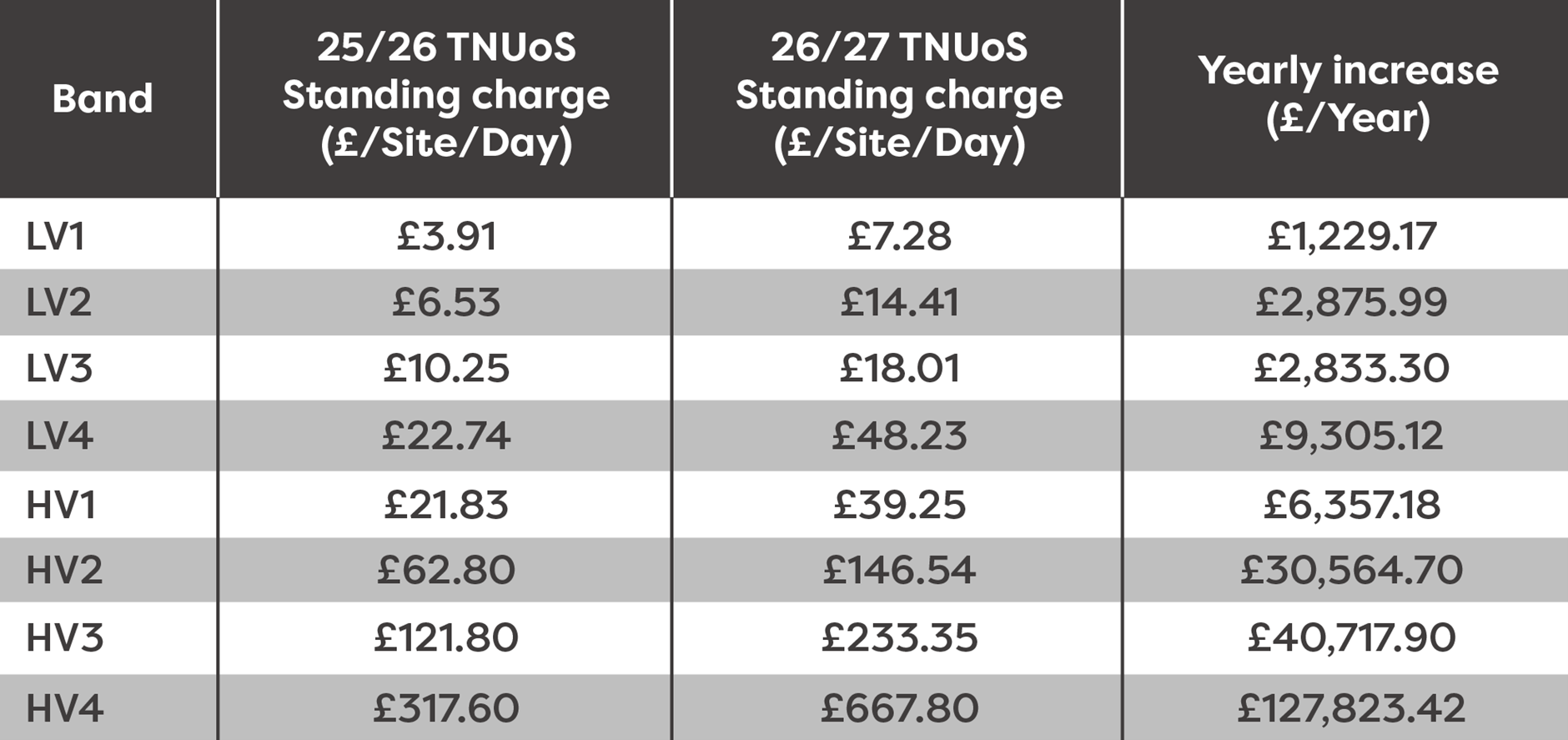 For some businesses respite may come in the changes to kVA range bandings, with some potentially falling into lower bands meaning their increase will not be as significant as it would have been in previous years.